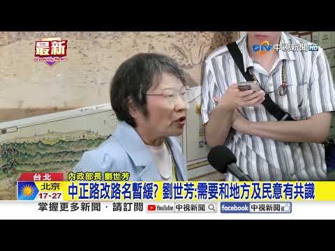 中正路改路名暫緩? 劉世芳:需要和地方及民意有共識│中視新聞 20250602