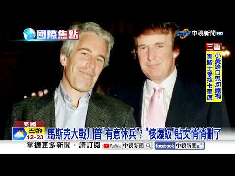 美國總統川普與親密戰友富豪馬斯克決裂,連日隔空交火,川普怒氣未消,稱自己忙著與各國處理許多事情,根本沒空理馬斯克,並強調將審查馬斯克與聯邦政府的鉅額合約,馬斯克則被發現,悄悄刪除了,指控川普名列性招待名單的"核彈級爆料"貼文,似乎有意休兵。