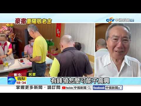 一年一度,重陽節敬老禮金,又要發放了,彰化市,從一大早,就開始準備,運鈔車載著錢,還有員警大陣仗守候,百名公所員工,幫忙分裝,加急狂點鈔,將近1600萬元大放送,70歲以上,每個人都能拿到500元。