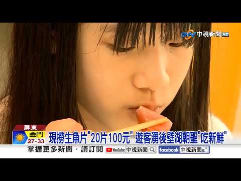 後壁湖漁港則是湧進中北部遊客,除了現撈海產外,還來朝聖 20 片 100 元的生魚片。