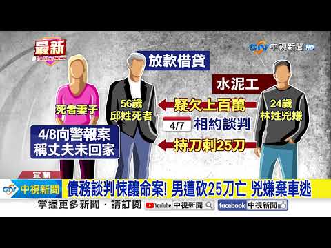 男遭"狠砍25刀"慘死車內 "欠債百萬"兇嫌落網│中視新聞 20250412