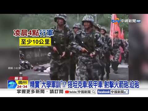 台灣軍訓常常拿去做戶外教學,或是頂多打靶,但在大陸的湖南,廣西和雲南,軍訓幾乎如同正規軍,凌晨4點起床行軍30公里,扛大木樁泡水,射擊火箭彈,迫擊砲,搭裝甲車、坦克車,校園人手一把槍,模擬軍匪大戰,超逼真,不知道以為讀的是國防大學,或是哪個軍閥政變了。