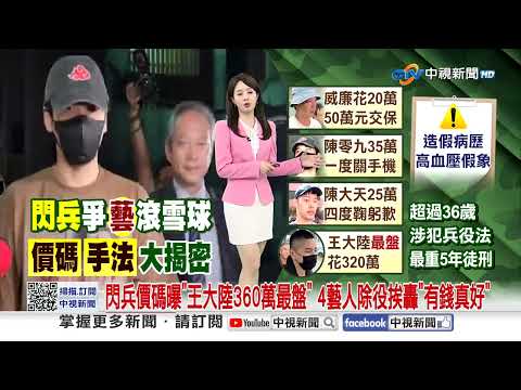 閃兵價碼曝"王大陸360萬最盤" 4藝人除役挨轟"有錢真好"│中視新聞 20250515