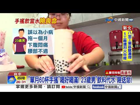 台中一名23歲男子,把手搖飲料當水喝,一天兩杯"半糖"烏龍茶!加上從事餐飲業,忙碌常常憋尿,因此腎結石,出現血尿!他沒多想,拖了將近一個月才就醫,沒想到發炎指數,超出正常90倍!最終引發敗血症,住進加護病房!以含糖飲料代替水,險些送命!