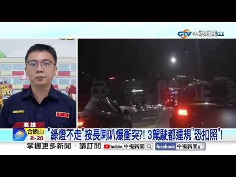 高雄鼓山爆行車糾紛,前車綠燈了還不走,被後車狂按長喇叭引發不滿,竟逆向攔車 當街互嗆,三名男子下車圍堵,卻被女乘客霸氣嚇退,新興區則出現離譜行人,無差別擋車,站在斑馬線上 一動不動,硬是要等到號誌燈變色才肯離開,讓駕駛超傻眼。
