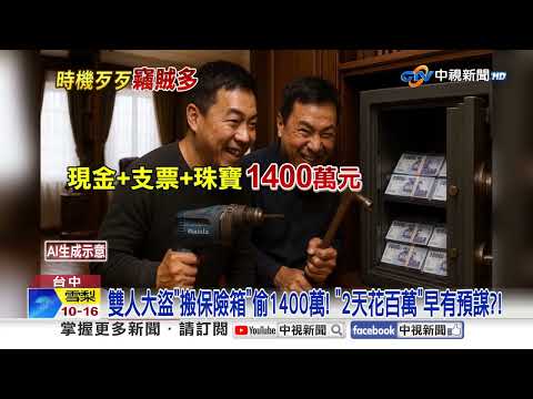 台中一中街商圈,半夜竟有服飾店,遭男子闖入,翻箱倒櫃,偷走4600元備用金,店家懷疑是慣竊所為,由於嫌犯特徵明顯,警方已經掌握身分,通知到案;另外台中大里,竟有2名男子,跑到民宅搬走"保險箱",得手現金、支票及珠寶,共計1400多萬元,金額龐大,令人吃驚!