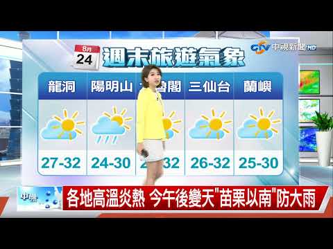 【易璇氣象報報】北部高溫37度防熱傷害 午後雷陣雨範圍擴大│中視午間氣象 20250824