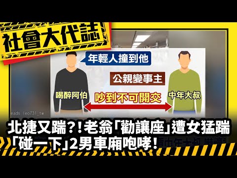 《社會大代誌》北捷又踹?!老翁「勸讓座」遭女猛踹 「碰一下」2男車廂咆哮!
