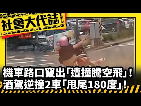 《社會大代誌》機車路口竄出「遭撞騰空飛」! 酒駕逆撞2車「甩尾180度」!