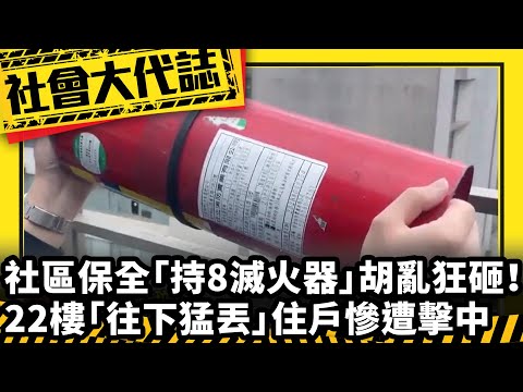 《社會大代誌》社區保全「持8滅火器」胡亂狂砸! 22樓「往下猛丟」住戶慘遭擊中