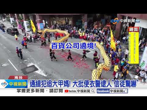 大甲媽遶境,吸引60萬人,沒想到,居然有通緝犯,隱身在人群之中,一名38歲男子,涉犯傷害及洗錢,被通緝,他還跑來遶境湊熱鬧,從大甲走到雲林,渾然不知,自己已經被警方盯上,最後他在大鼓陣的貨車上休息時,被逮個正著;另外台中北區,則有保生大帝遶境,走進百貨公司,吸引目光。