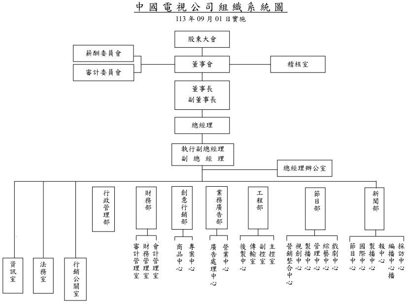 管理組: (1) 節目部綜合業務。(播映、智財權等管理及節目預算編制與核銷)。